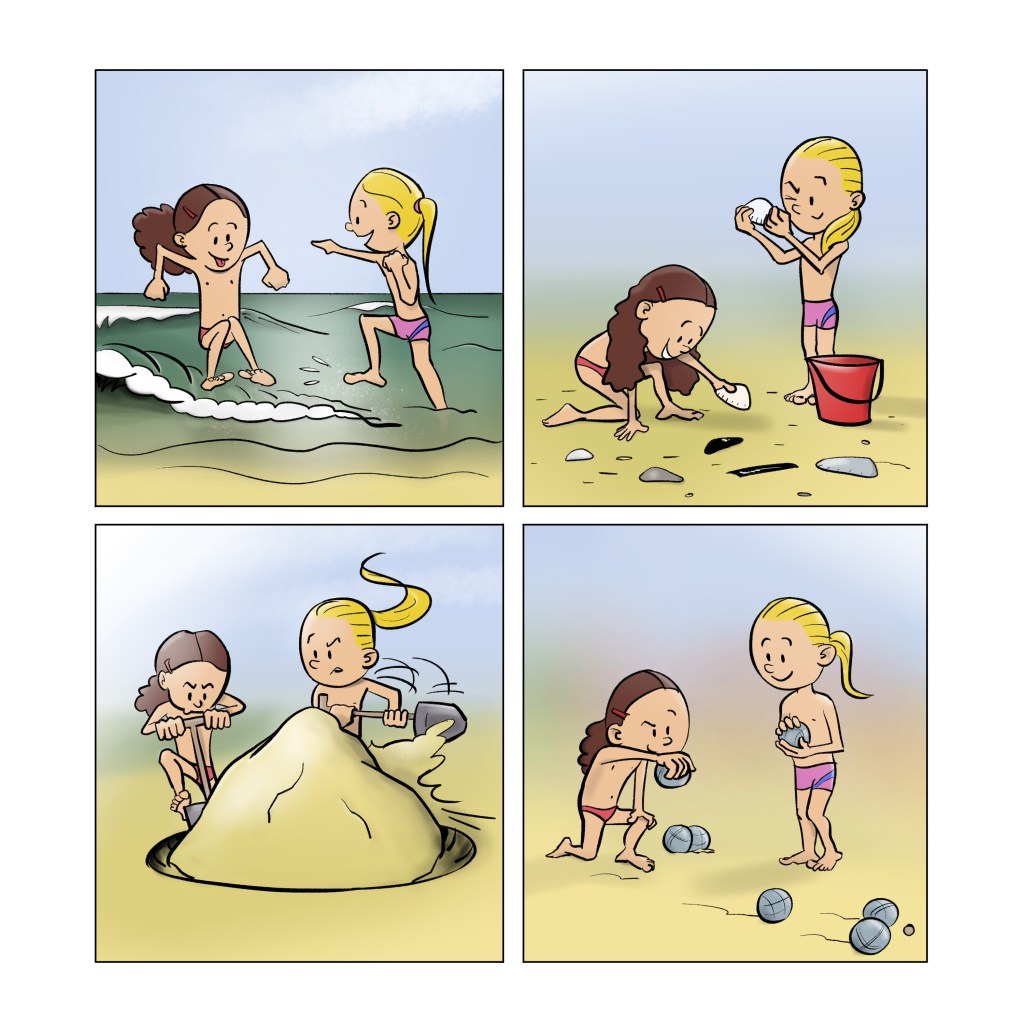 Je viens de publier le troisième opus des aventures d’Éline et Elena. J’y ai mis plus de soin encore que dans les deux précédents, enrichissant les décors, les couleurs, les jeux d’ombre et de lumière.