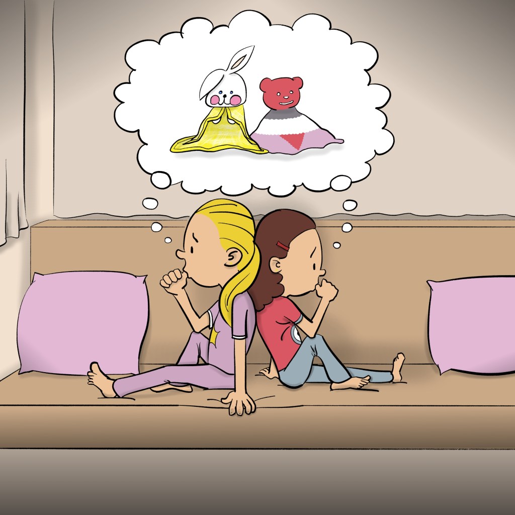 Composé de dix-sept dessins et de trente-quatre pages, il raconte le départ à la mer des deux cousines et la disparition subite de leurs doudous. Comment vont réagir Éline et Elena ? Pourront-elles passer toute une journée et toute une nuit sans eux ?