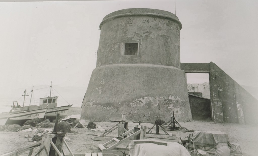 Les travaux débutèrent en 1752 sous la supervision de l’ingénieur d’origine flamande Thomas Warluzel d’Hostel. Érigée directement sur la plage de Balerma, de forme circulaire et d’aspect massif malgré sa taille modeste (20 varas, soit seize ou dix-sept mètres de hauteur), la tour avait pour particularité de ne pas avoir de porte d’entrée à hauteur de sol et de n’être accessible que par un escalier et un pont-levis situé à l’étage.