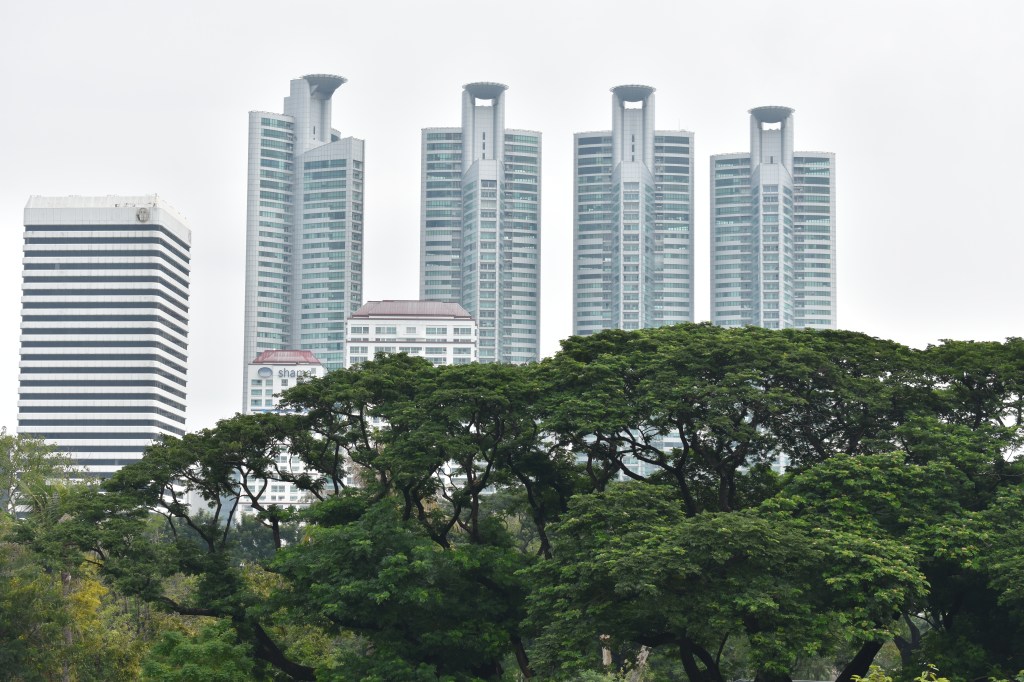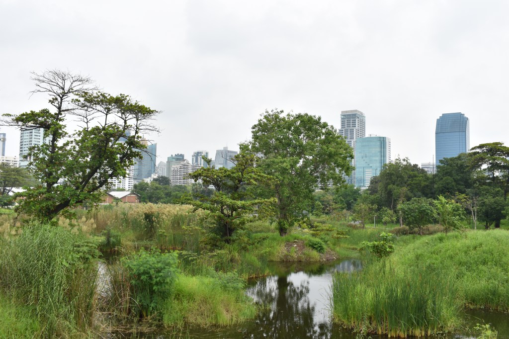 Nous traversâmes le parc en diagonale et aboutîmes à une passerelle piétonnière surélevée qui reliait le parc Lumpini au parc forestier Benchakitti.